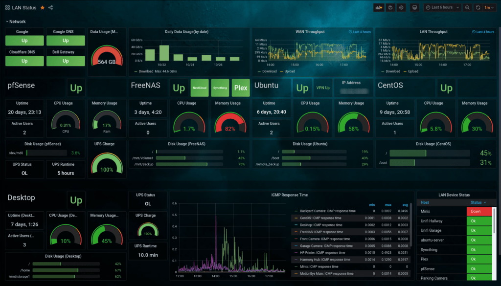 Tools such as Zabbix can be customised and deployed to monitor any metric in real time, from node availability, through to configuration changes, logins or password resets. This data can be fed into Grafana for real time visual representation of data.